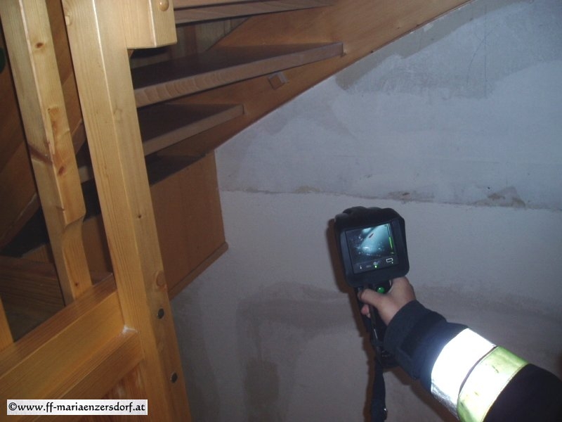 die FF Mödling mit der Wärmebildkamera an. Die betroffene Wandverkleidung wurde