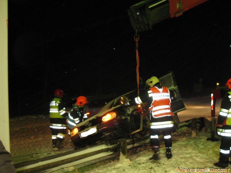 Nachdem die Unfallstelle abgesichtert wurde, konnte das Fahrzeug mittels Kranfahrzeug von der Leitschiene gehoben werden. Nach einer Begutachtung des Fahrzeuges setzte der Fahrzeuglenker seine Fahrt fort, da keine größere Schäden am PKW entstanden sind.