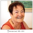 Am 17. Jänner 2010 ist die Welt wieder etwas dunkler geworden. Gertrude Leeb, seit 1998 Mitarbeiterin des Roten Kreuzes und Mitglied der Dienststelle Türnitz, verstarb am Sonntag vormittag nach längerer Krankheit im 75. Lebensjahr. Sie war im Rettungs- und Krankentransportdienst und als Journaldienst engagiert im Einsatz, aus gesundheitlichen Gründen trat sie in den vergangenen Jahren etwas kürzer, mit dem Projekt Lebensmittel hatte sie zuletzt ein neues Betätigungsfeld gefunden.