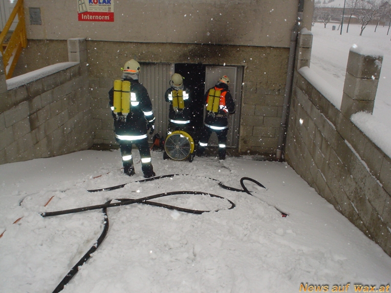 Kellerbrand auf den Gartenweg in Prellenkirchen alarmiert. Aufgrund der