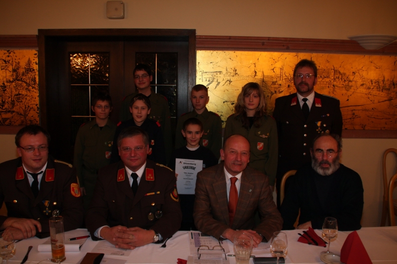 Anschließend wurden die mitglieder der Feuerwehrjugend für die Teilnahme an verschiedenen Fertigkeitsbewerben vom Kommandanten und vom Bürgermeister mit Urkunden und Abzeichen ausgezeichnet. Folgende Feuerwehrjugendmitglieder waren unter den geehrten: Tobias Horn, Franz Müllner j., Florian Amesbauer, Dominik Jerzabek, Tobias Amesbauer und Nathalie Klein.