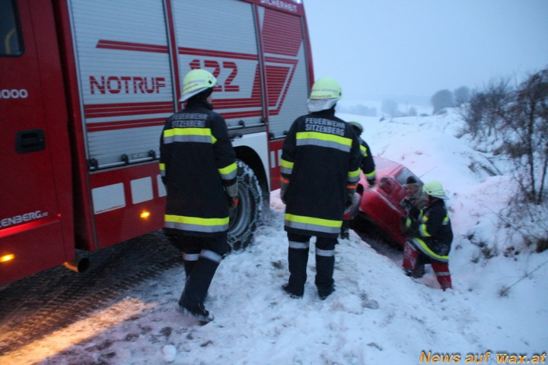 Kurz vor sieben Uhr heulten in Sitzenberg die Sirenen. Durchsage von der Landeswarnzentrale lautet: Verkehrsunfall mit eingeklemmter Person. Als die Feuerwehr eintraf bot sich folgendes Bild: Auto lieg seitlich im Graben, Person bereits aus dem Wagen, keine weitere Person eingeklemmt.