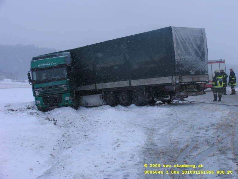 der LB 4 bei Mörtersdorf ein bulgarischer Sattelzug in den Straßengraben.