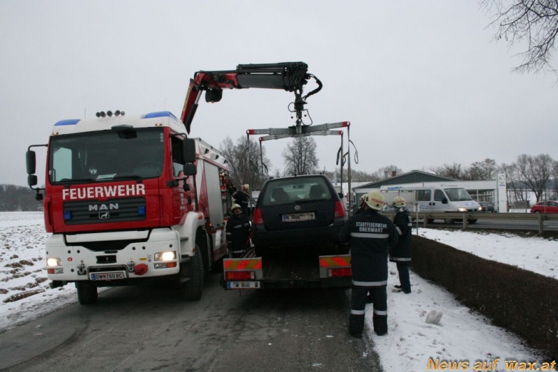 Die Autos wurden mit dem Kran geborgen und der Güterweg war nach kurzer Zeit wieder frei.