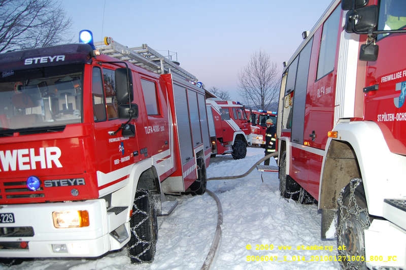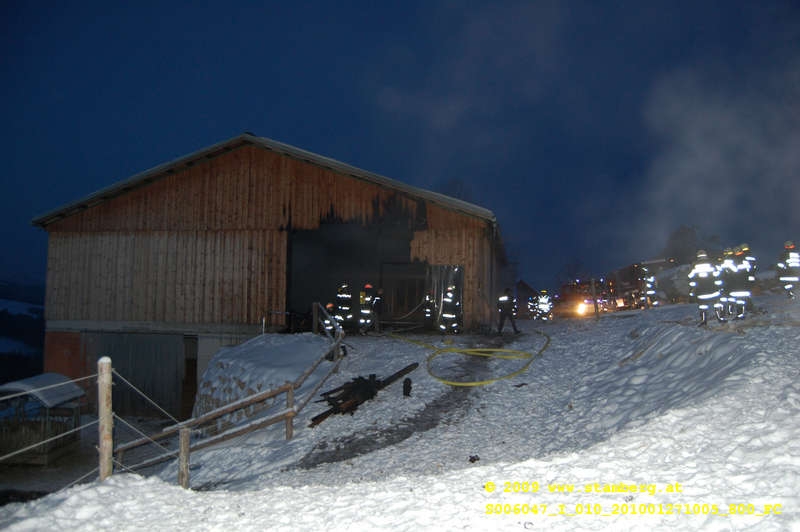 Am 27.01.2010 Auf einem Bergbauernhof im Kreisbachtal Waren die Feuerwehren aus der Umgebung herausgefordert. Ein Reitstall soll brennen hieß es am Notruftelefon in der Feuerwehralarmzentrale in St. Pölten.