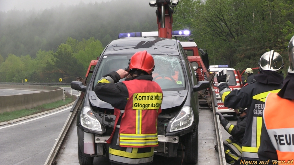 Leitstellendisponent Andreas Zinner alarmierte die zuständige FF Gloggnitz Stadt zur Autobahn Menschenrettung mit dem Meldebild T2. Weiters wurde die Autobahnpolizei sowie das Rote Kreuz informiert. Beim Eintreffen der ersten Kräfte stellte sich die Lage anders das, als angegeben. Eine Lenkerin kam mit ihrem Pkw von der regennassen Fahrbahn ab, rammte ein Verkehrsschild und kam entgegen der Fahrtrichtung zum Stillstand.