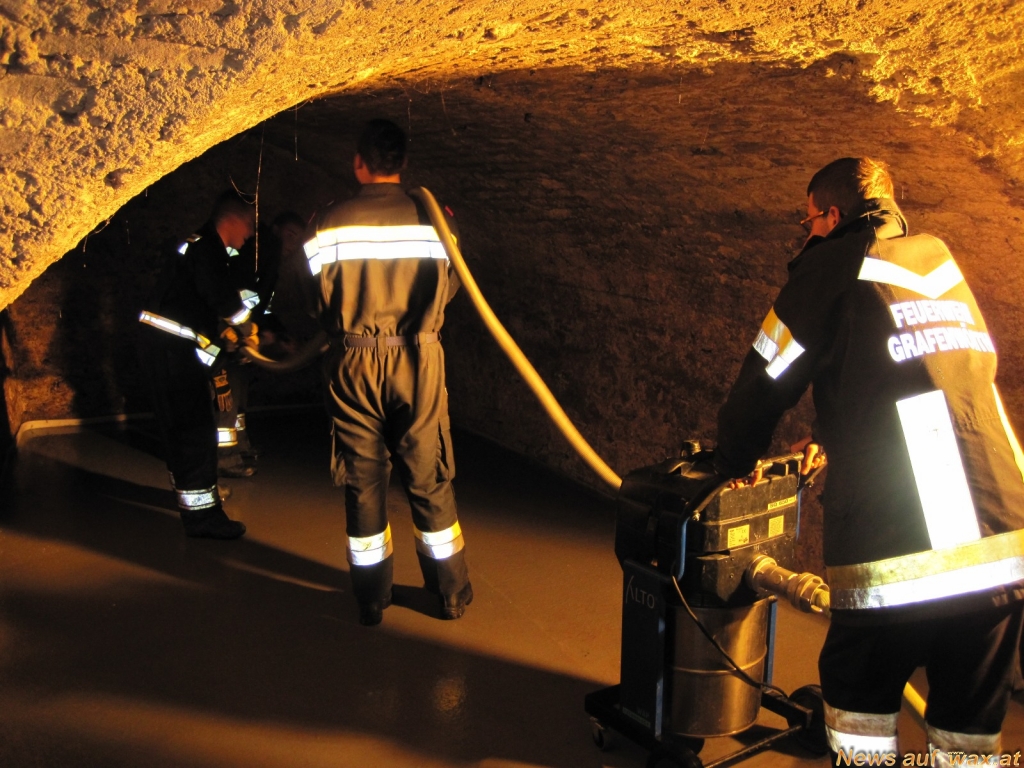 Bei Eintreffen der Feuerwehr Grafenwörth stand der Erdkeller des Gebäudes samt historischem Gewölbe bereits hoch unter Wasser. Rasch konnte der Schaden an der Wasserzuleitung im Erdgeschoss lokalisiert und abgedichtet werden.