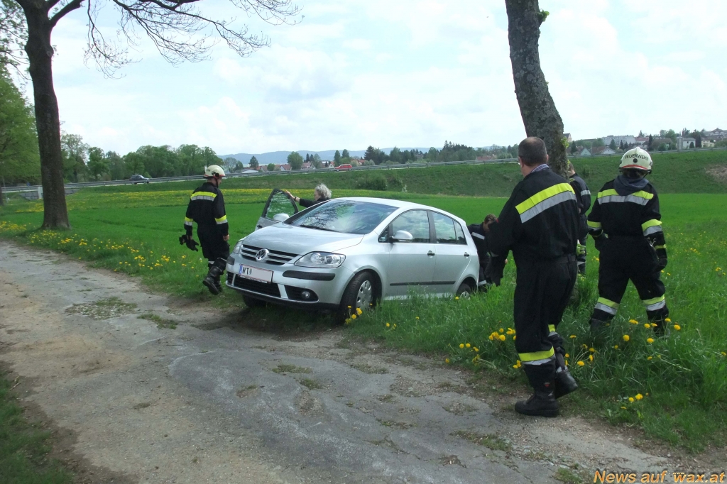 Mittels Muskelkraft wurde der Unfallwagen von den Einsatzkräften wieder zurück auf die Fahrbahn geschoben und das Ehepaar setzte anschließend ihre Fahrt wieder fort. Bereits um 13:15 Uhr konnten die Feuerwehrmitglieder wieder ins Feuerwehrhaus einrücken.