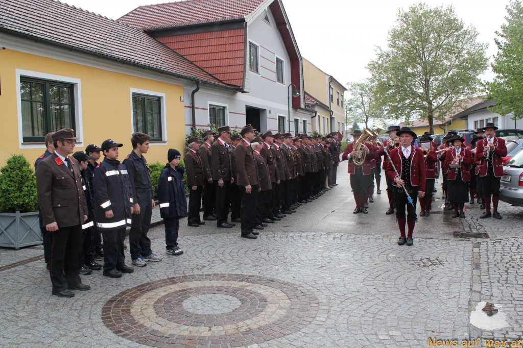 Nach der Messe ging es mit der Musikkapelle wieder zurück. Der Feuerwehrkommandant der Freiwilligen Feuerwehr Wagram am Wagram OBI Michael Grausenburger bedankte sich bei allen Feuerwehrmitglieder für ihr Erscheinen und beim Musikverein für die musikalische Umrahmung der Florianimesse.