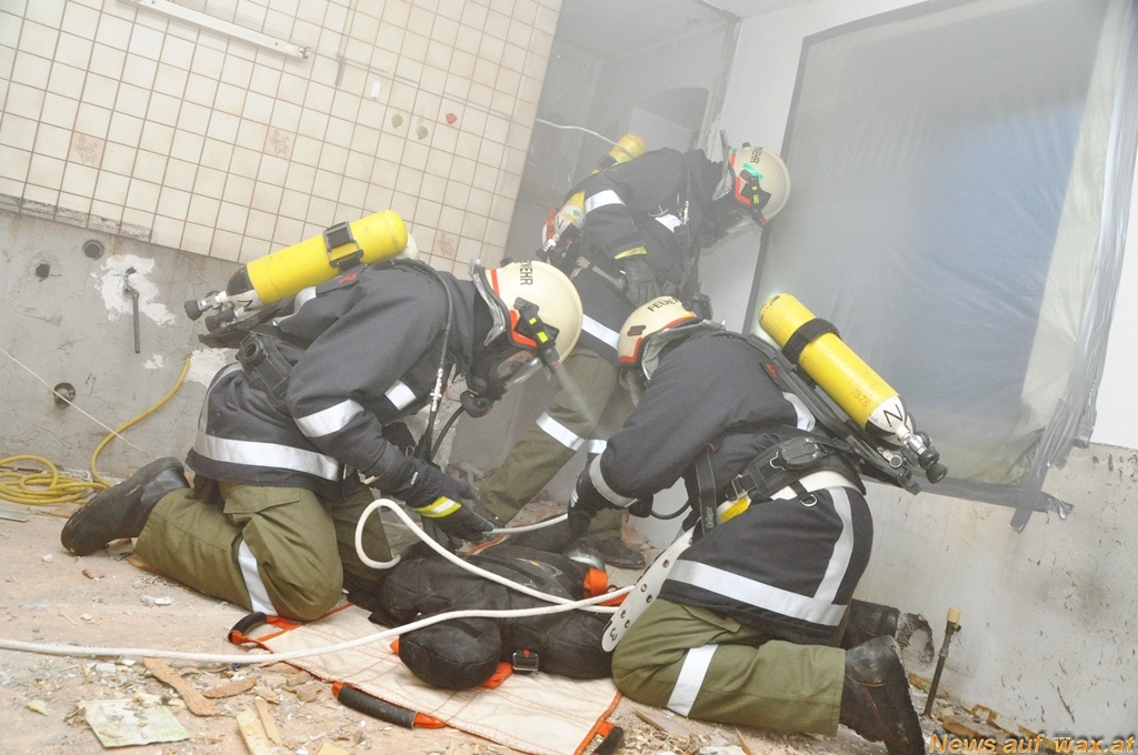 Zur Vorbereitung wurde das Haus mit mehreren Nebelmaschinen bestückt und bis unter die Decke verraucht. Die Atemschutztrupps zu je drei Mann machten sich auf die Suche nach den zahlreichen Darstellern, die sich im ganzen Gebäude verteilt versteckt hatten. Man sah zwar nicht einmal mehr seine eigene Hand vor den Augen aber nach zwei intensiven Übungsstunden und den Test einer