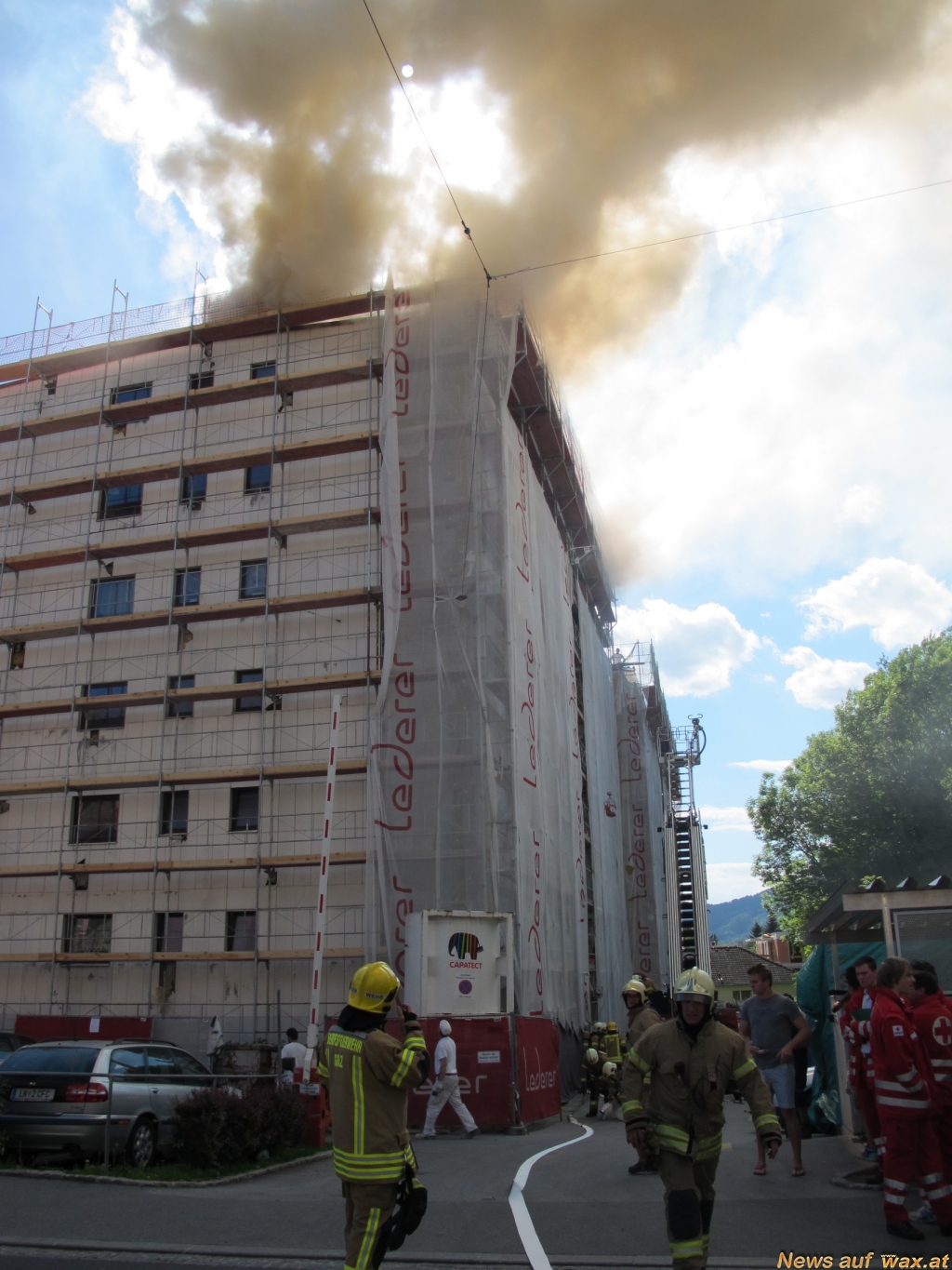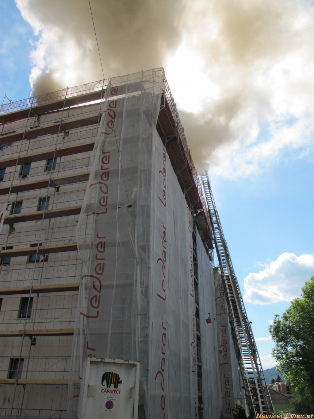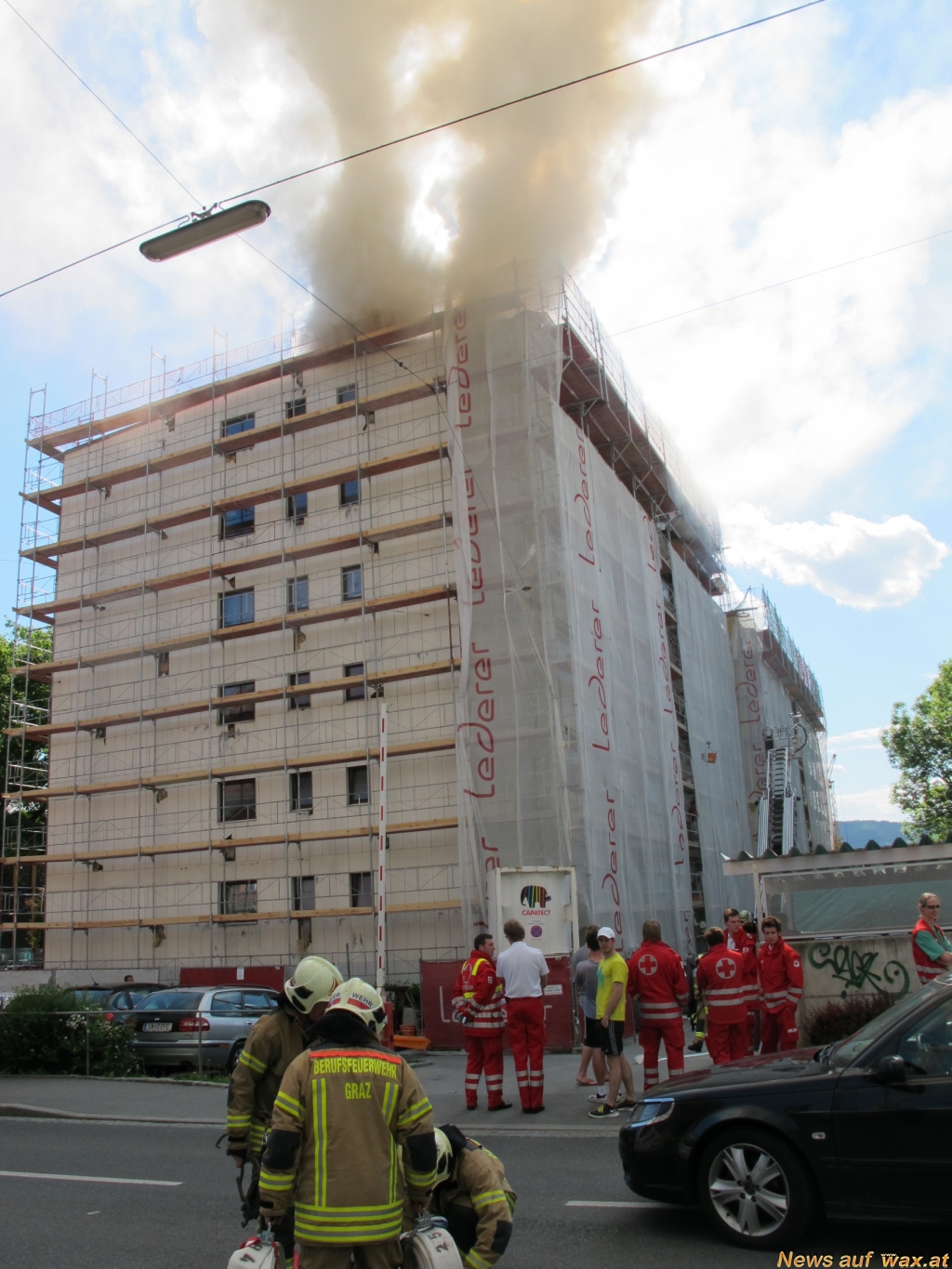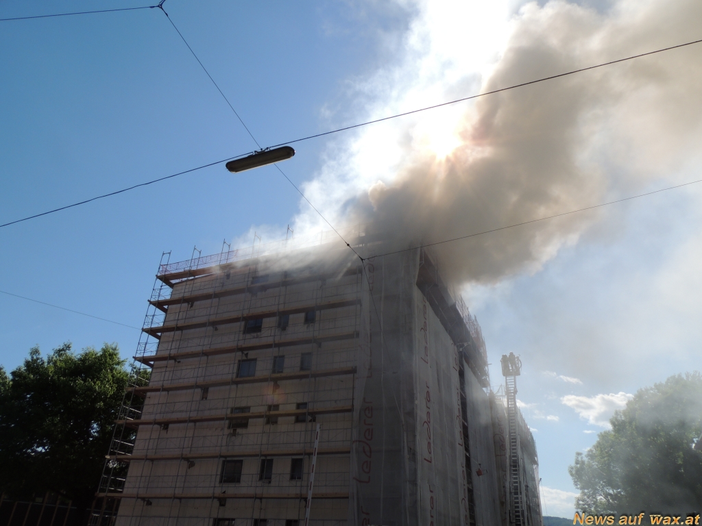 Gegen 15.15 Uhr ging heute (Dienstag, 14. Mai 2013) bei der Grazer Berufsfeuerwehr der Notruf ein, dass es am Dach eines siebengeschossigen Wohnhauses brennt. Beim Eintreffen der Feuerwehr gab es bereits eine sehr starke Rauchentwicklung, die weithin sichtbar war.