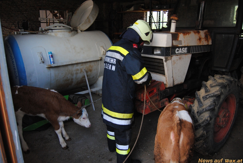 Beim Eintreffen der ersten Feuerwehren wurde vom Einsatzleiter sofort auf die Alarmstufe B4 erhöht. Die Personen wurden mittels Atemschutz aus dem Wohngebäude gerettet und kamen mit einer leichten Rauchgasvergiftung davon. Im Stall befanden sich 35 Kühe und 8 Kälber sowie zwei Schweine, diese wurden ebenso aus dem Stall gerettet.
