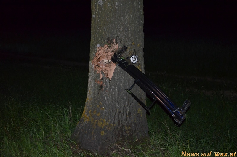 Durch die Wucht des Zusammenpralls wurde von beiden Fahrzeugen je ein Vorderrad samt Aufhängung herausgerissen. In weiterer Folge krachten beide Fahrzeuge jeweils gegen einen Baum. Karosserieteile des blauen PKW der Marke „Hyundai“ blieben am Baum kleben, sogar die Batterie wurde herausgeschleudert und lag am Fahrbahnrand. Das „Schlachtfeld“ erstreckte sich auf einer Länge von 100 Metern.