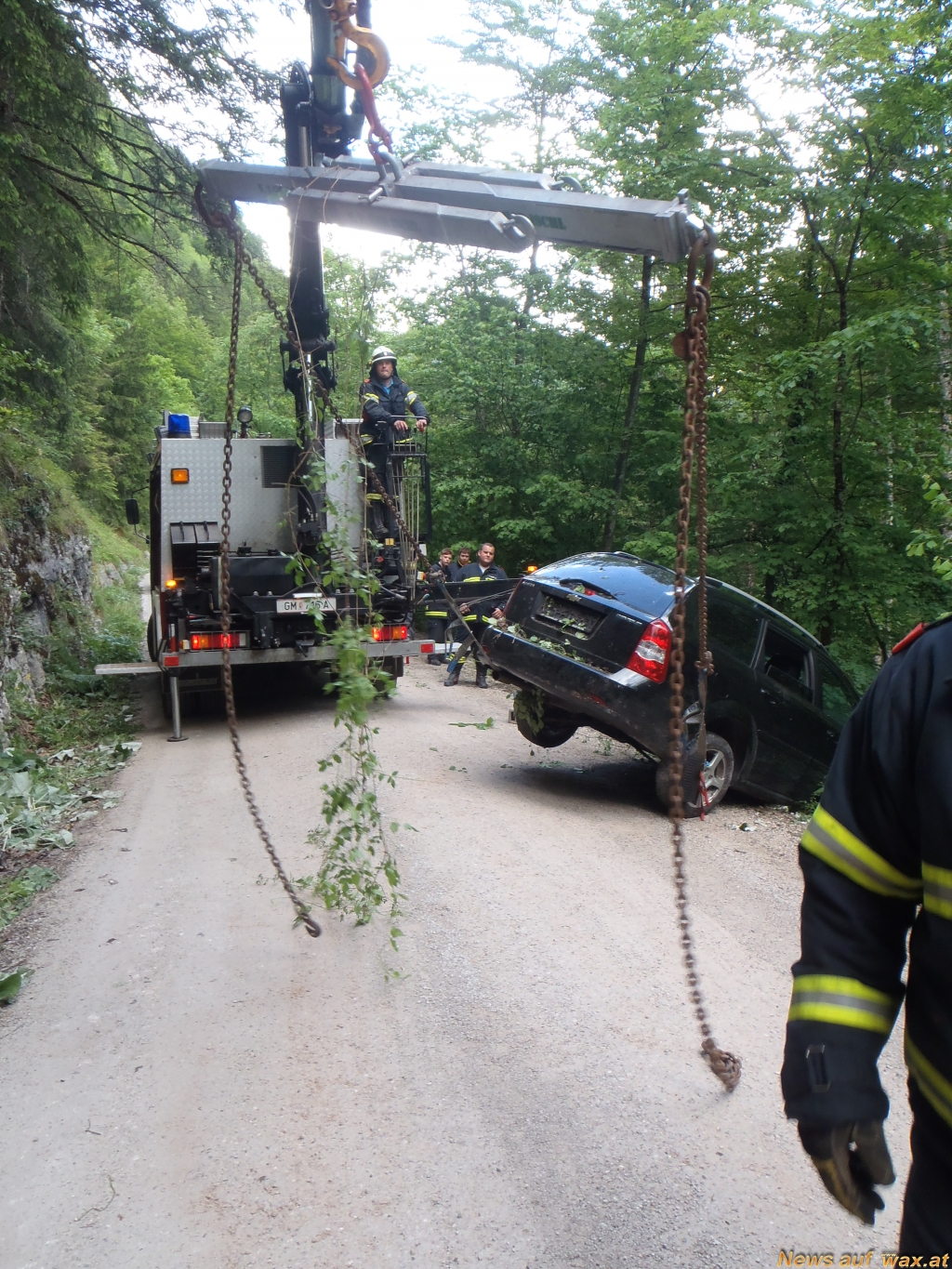 Beim Eintreffen der Einsatzkräfte der Freiwilligen Feuerwehr, wurde die Lenkerin bereits vom anwesenden Notarztteam versorgt. In weiterer Folge wurde sie von der Bergrettung Bad Ischl, in Zusammenarbeit mit den Kameraden der Freiwilligen Feuerwehr, aus dem steilen und unwegsamen Gelände geborgen.