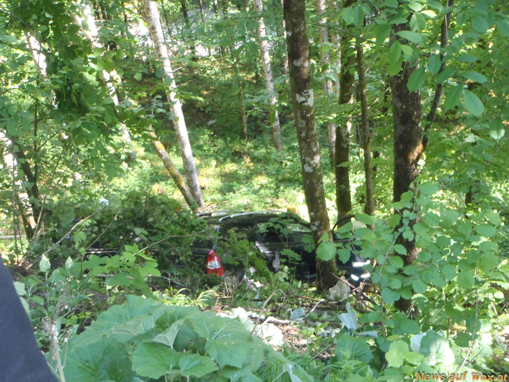 Aus bisher unbekannter Ursache kam eine Fahrzeuglenkerin mit ihrem PKW von der Rettenbachalmstraße ab und stürzte ca. 30m über eine Böschung, wo das Fahrzeug gegen einen Baum prallte bzw. verhinderte dieser ein weiteres abstürzen des PKW.