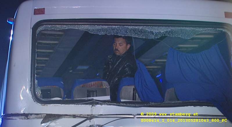 Ein ungarischer Sattelzug ist auf einen vollbesetzten rumänischen Reisebus mit Anhänger aufgefahren. Dabei wurden 3 Personen verletzt. Ein Ca. 4 Meter langes und 2 meterbreites teil des Anhängers hat sich durch die Windschutzscheibe des Sattelzuges gebohrt und wurde erst auf der Rückwand der Fahrerkabine abgebremst.