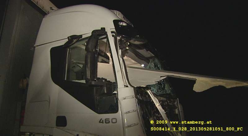 Die oberhalb in der Schlafkoje befindliche Beifahrerin und der Lenker des Schwerfahrzeuges hatten enormes Glück sie blieben unverletzt.