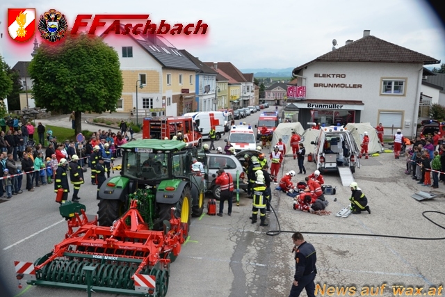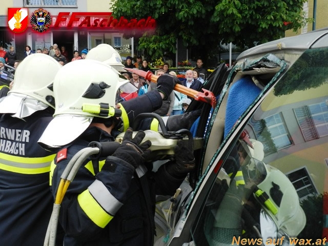Als besonderes Highlight wurde die Leistungsschau seitens der Feuerwehr von Kommandant HBI Mario Üblacker und seitens des Roten Kreuzes von Dir. Katharina Latschenberger moderiert. Die Feuerwehr Aschbach bedankt sich nochmals für die Teilnahme und die gute Zusammenarbeit beim Roten Kreuz St.Peter/Au und Amstetten, bei Dr. Wolfgang Schmutzer und der Polizei Aschbach.