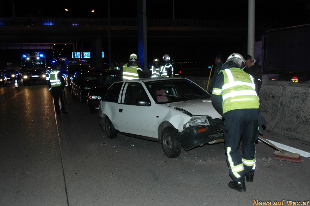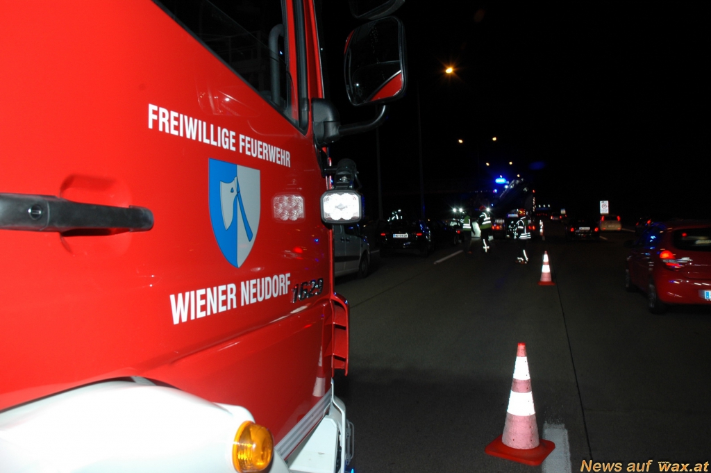 In der abendlichen "Rushhour" am 30. Oktober 2013 wurden die Wiener Neudorfer Feuerwehrmänner durch die Bezirksalarmzentrale zu einem Verkehrsunfall mit insgesamt neun beteiligten Fahrzeugen auf der A2 alarmiert.