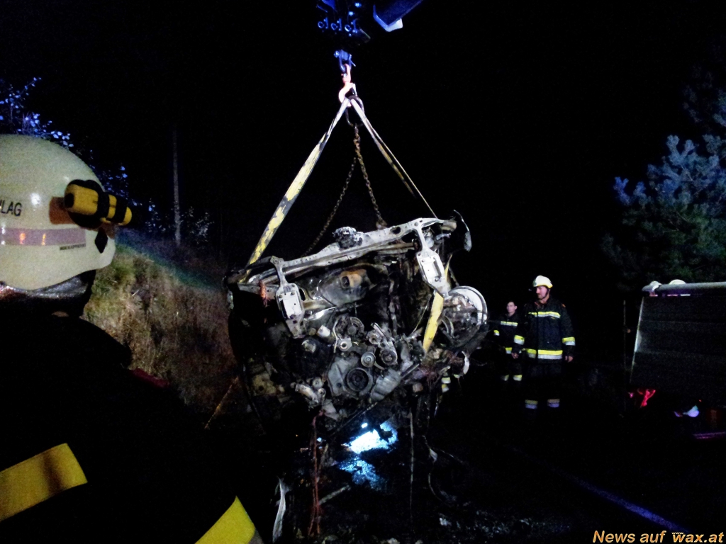 Mittels Kranfahrzeug der FF Weissenkirchen wurde das ausgebrannte Wrack von der Straße entfernt. Aufgrund der enormen Hitze wurde die Fahrbahn beschädigt. Die Polizei Weissenkirchen übernahm die Unfallaufnahme und das Rote Kreuz Krems, stellte mit einem Rettungstransportwagen, während der Brandbekämpfung als Absicherung für die eingesetzten Kräfte zu Verfügung.