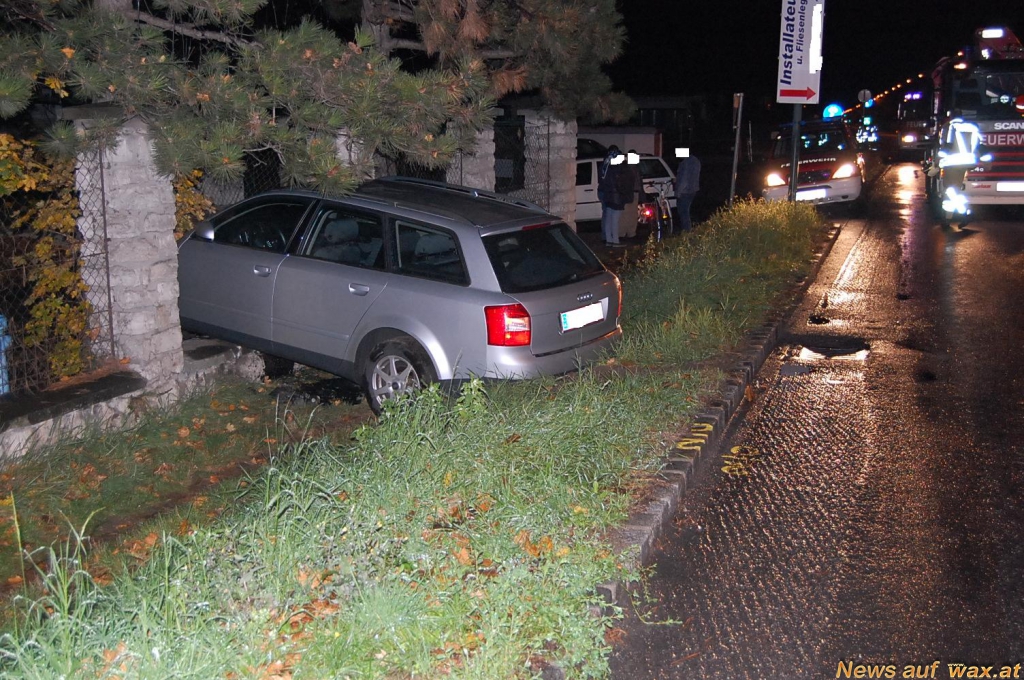 Am 7.11.2013, gegen 1 Uhr 45, wurde die Feuerwehr Felixdorf zu einem technischen Einsatz "PKW-Bergung auf Höhe Wasserwerk " alarmiert. Aus derzeit ungeklärter Ursache geriet ein PKW von der Hauptstraße ab, hob über den Straßengraben ab und kam auf der Umzäunung des örtlichen Wasserwerkes zum Stillstand.