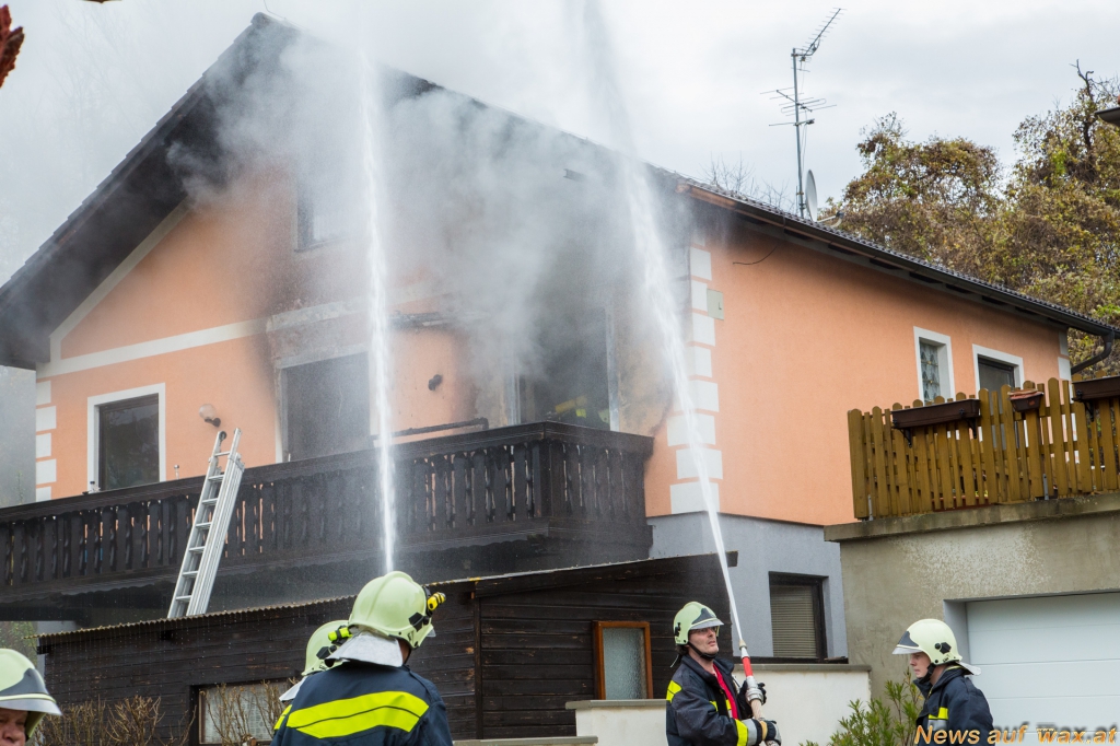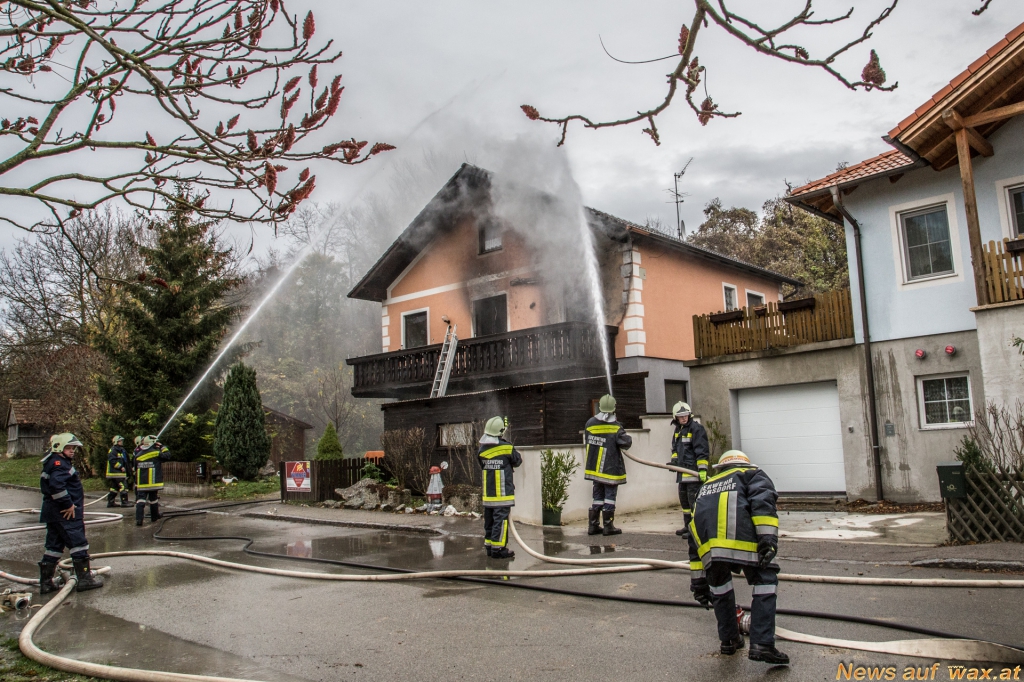 "Küchenbrand in Haslach" lautete die erste Alarmierung am 09.11.2013 um ca. 11:15 für die Feuerwehren Haslach, Nappersdorf und Klein Weikersdorf. Beim Eintreffen der Feuerwehr Haslach schlugen jedoch bereits die Flammen durch zwei Fenster bis in den Dachbereich.