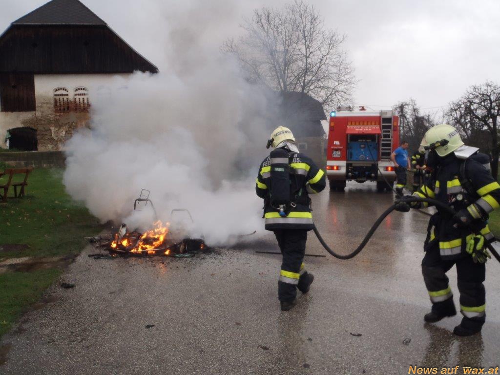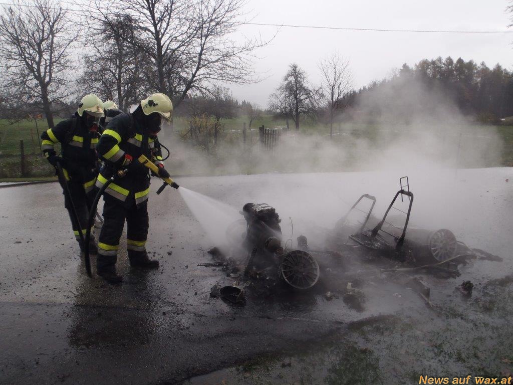Durch noch ungeklärte Ursache ist heute ein sogenanntes Microcar komplett in Flammen aufgegangen und innerhalb von 15 min komplett aus/niedergebrannt.