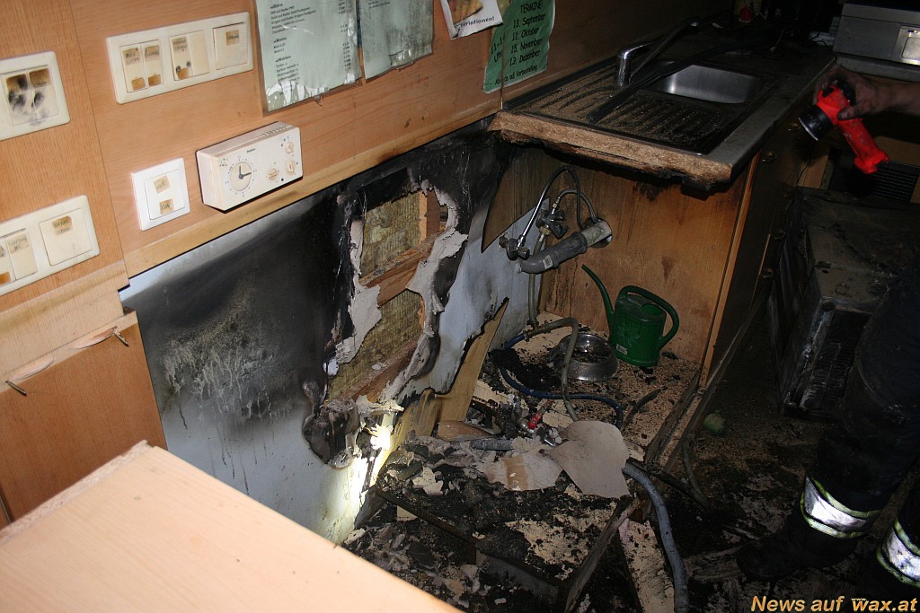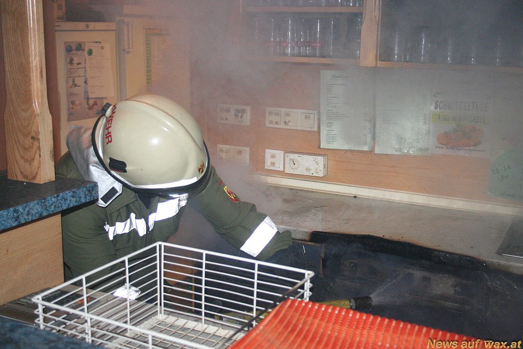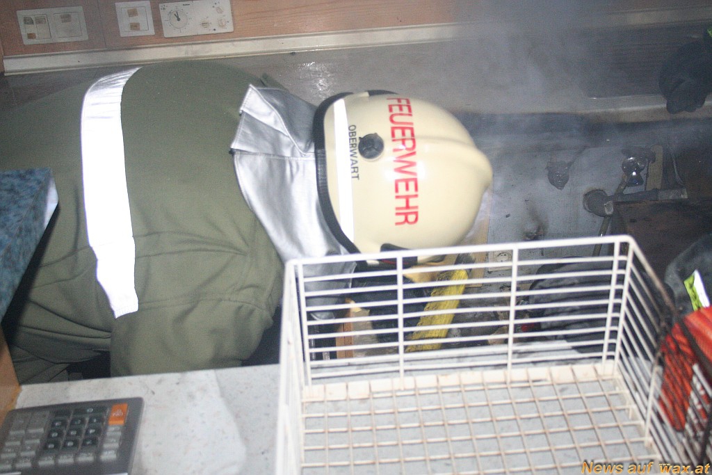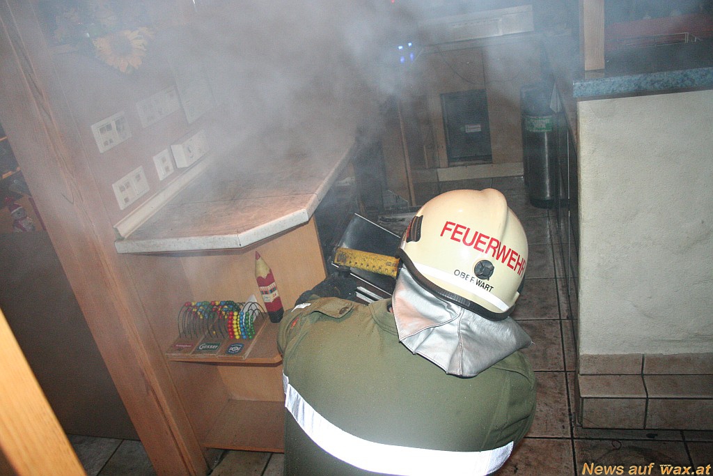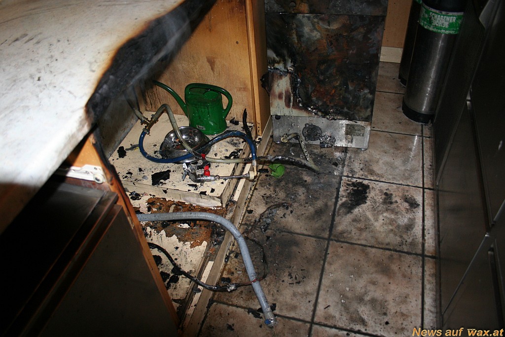 Bei der Theke ist es aus bisher ungeklärter Ursache zu einem Brand eines Geschirrspülers gekommen. Die ersteintreffende Kellnerin und Wirtin versuchten den Brand mit einem Handfeuerlöscher zu löschen. Die Stadtfeuerwehr rückte rasch mit einem HD-Rohr vor und löschte den Brand. Es konnte Brand aus, gegeben werden. Verletzt wurde niemand. Das Lokal wurde mit einem Druckbelüfter belüftet um den Rauch hinaus zu bringen. Anschließend wurde nach Absprache mit der Polizei die sehr heiße Arbeitsplatte entfernt um weitere Brände verhindern zu können. Während des gesamten Einsatzes wurde der Brand und das Gebäude mit der Wärmebildkamera überwacht.