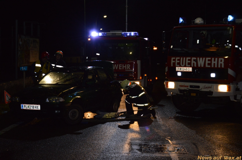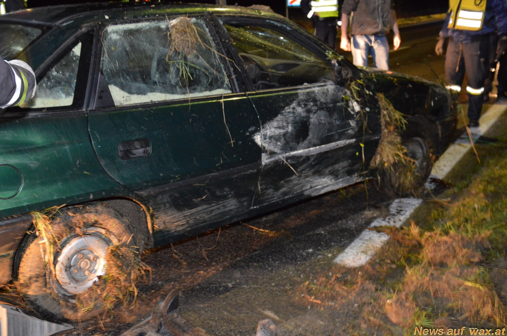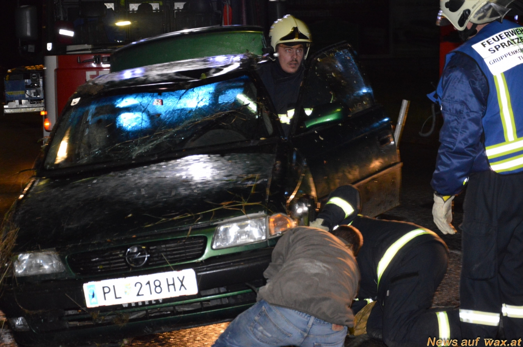 Der Pkw Lenker konnte sich nicht selber aus dem Fahrzeug befreien. Erst die Eintreffende Feuerwehr konnte zusammen mit der Rettung den Mann aus seiner Lage Befreien und wurde unmittelbar mit Verhetzungen unbestimmten Grades ins LKH. St. Pölten Transportiert.