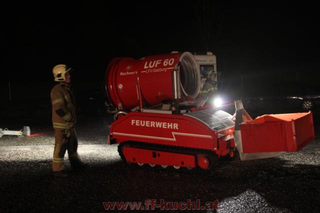 Laut Ausrückeordnung wird durch Übungsleiter HBI Struber Johann Alarmstufe 2 ausgelöst. Neben der Freiwilligen Feuerwehr Kuchl und dem Löschzug, die bereits im Einsatz sind, eilen Tank und Pumpe Vigaun sowie Tank und Pumpe Golling mit der Sonderanforderung "Luft-Unterstützungs-Fahrzeug" zu Hilfe. Das Rote Kreuz Golling rückt ebenfalls mit zwei Fahrzeugen an.