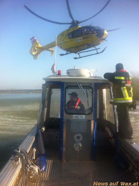 Während die Mannschaft mit dem Boot ausrückte wurde auch der Rettungsdienst zu dem Einsatz verständigt. Der Einsatzleiter lotste via Funk Christophorus 2 Krems zur Einsatzstelle. Dieser zeigte mit seinem Standort den Einsatzkräften am Boot den Standort der treibenden Person an.