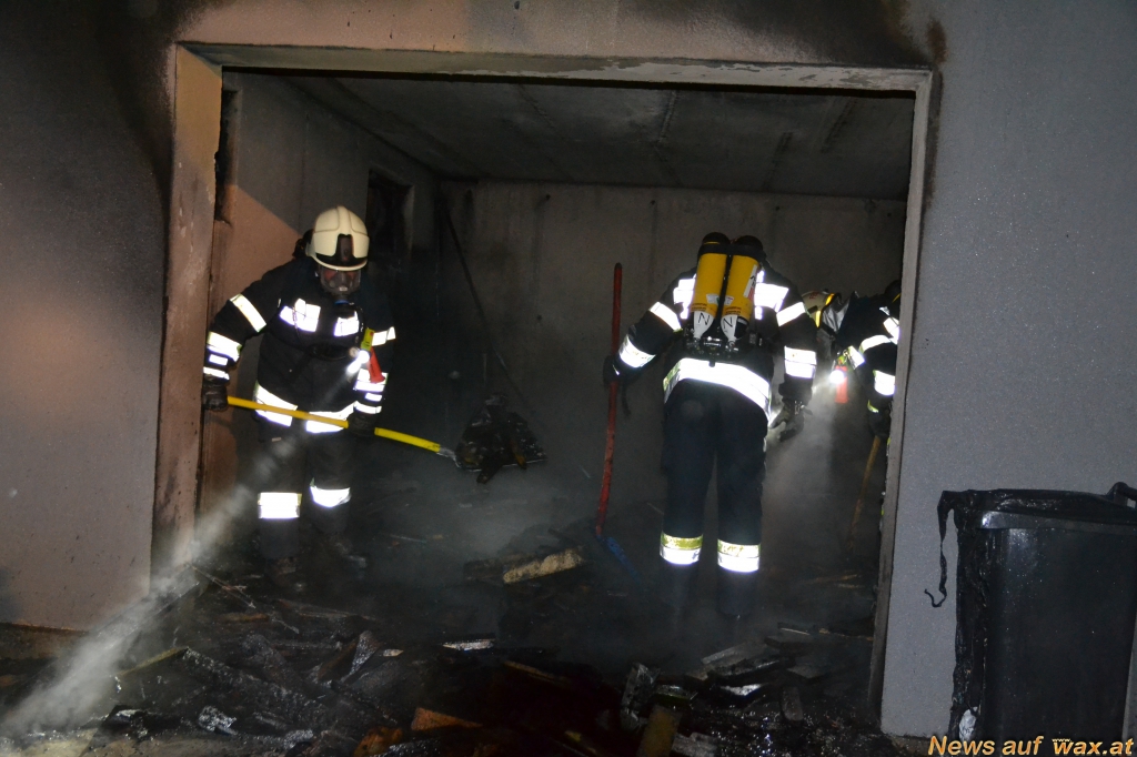 Beim Einsatzort angekommen, stand das Fahrzeug in der Garage in Vollbrand. Unter Einsatz von schwerem Atemschutz und der Wärmebildkamera konnte der Brand rasch unter Kontrolle gebracht werden. Schlussendlich wurde das Fahrzeugwrack noch aus der Garage gezogen sowie letzte Glutnester gelöscht.