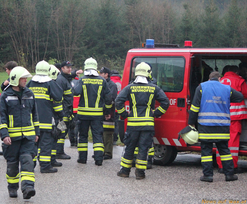 Dramatische Situation für Eltern mit Kinder, ein erst 3 jährige Junge war heute Samstag 23.11. in Neuhofen an der Krems abgängig. Nach einstündiger Suchaktion durch Eltern, Nachbarn und Bekannten wurde die Polizei verständigt. Auf Grund der Witterungsverhältnisse und der prekären Situation wurden umgehend die FF Neuhofen an der Krems, Kematen an der Krems und Weissenberg alarmiert. Zeitgleich wurden die Einsatzkräfte von ÖRHB und Suchhunde FF Traun verständigt. 16 Hundeführer und 20 Helfer der ÖRHB machten sich umgehend auf den Weg. Die Suche stellt sich schwierig dar, da der umliegende Wald sehr dicht bewachsen war, jedoch konnte der Junge nach ca. einer Stunde intensiver Suche im Haus von den Eltern gefunden werden, er hatte sich gut versteckt.