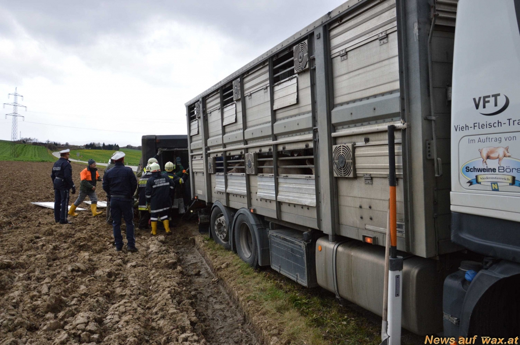 NÖ: Tiertransporter mit 80 Schweine umgekippt Bezirk Melk. (xxxxxxx)