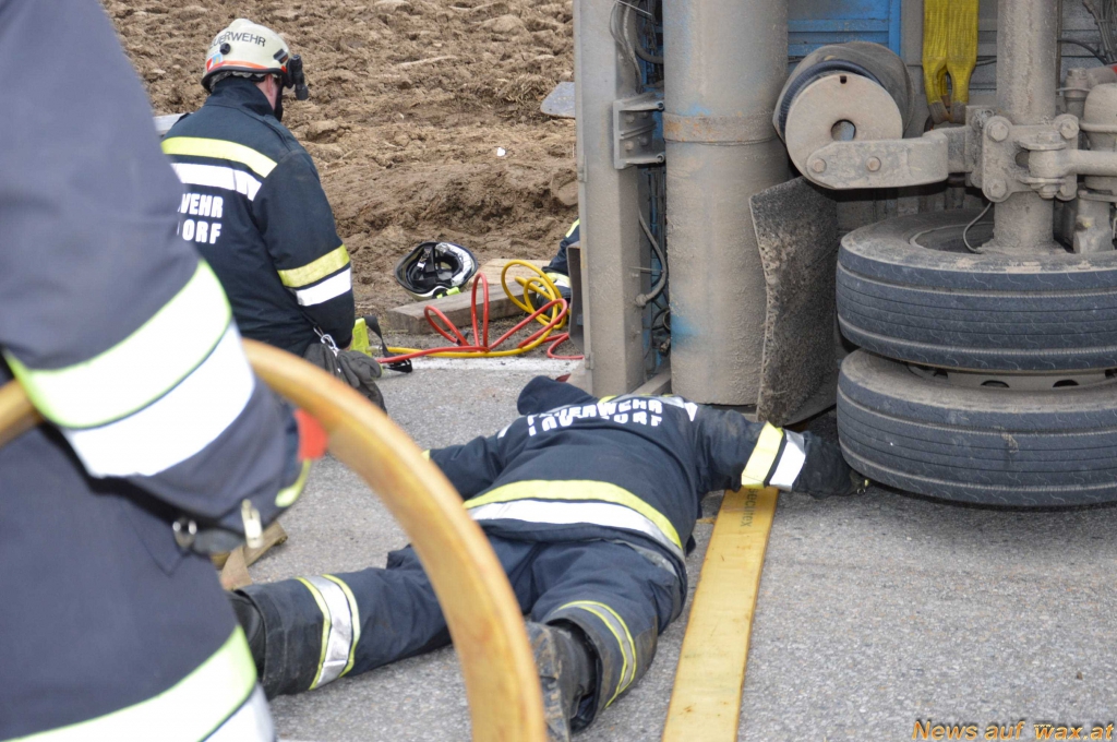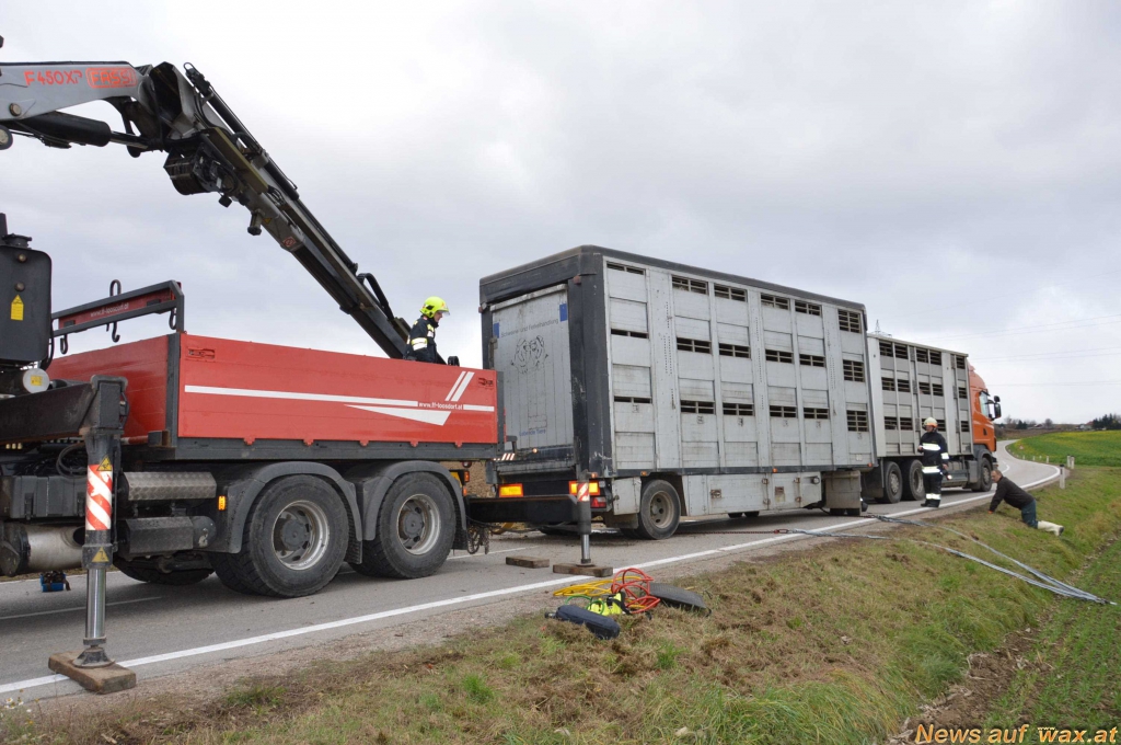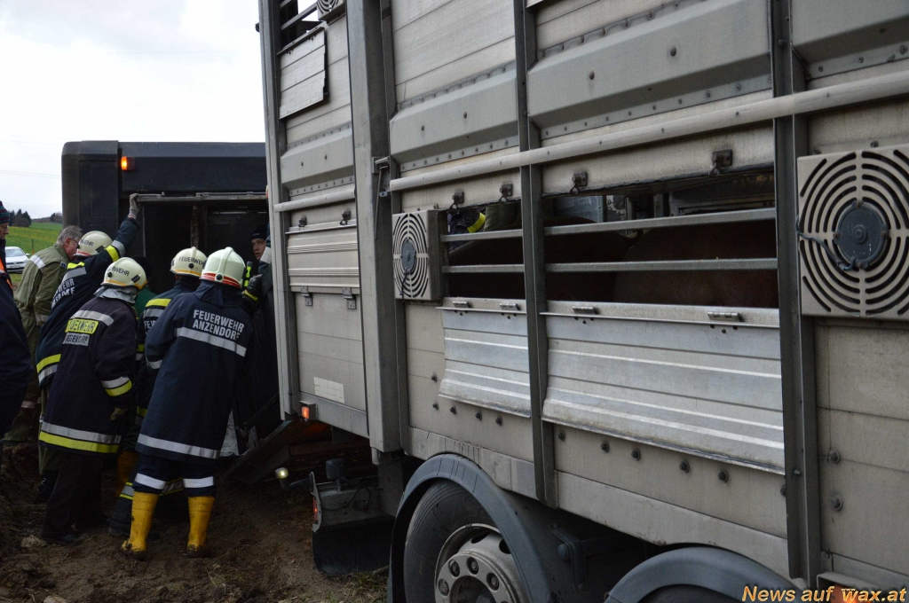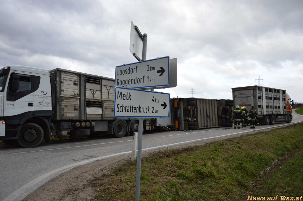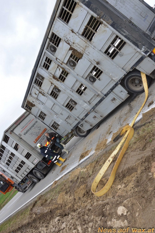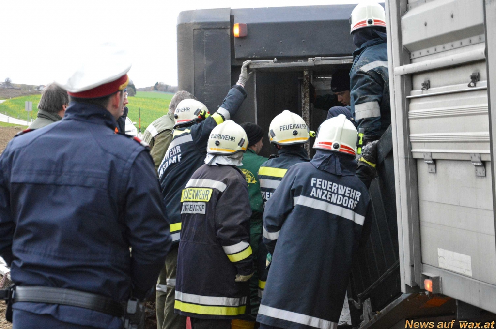 Die Feuerwehr Roggendorf, Anzendorf sowie Loosdorf haben die Tiere umgeladen und den LKW wieder aufgerichtet.