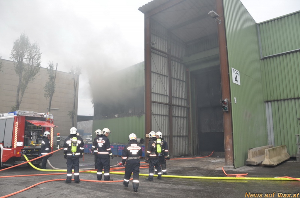 ie Berufsfeuerwehr Wien ging mit Atemschutz im Inneren der Halle gegen das Feuer vor. Zur Brandbekämpfung sowie zur Verhinderung einer Ausbreitung des Feuers auf benachbarte Gebäude wurden auch im Außenbereich mehrere Löschleitungen vorgenommen. Um den Brand endgültig unter Kontrolle zu bringen setzte die Berufsfeuerwehr zusätzlich Wasserwerfer und Löschschaum ein.