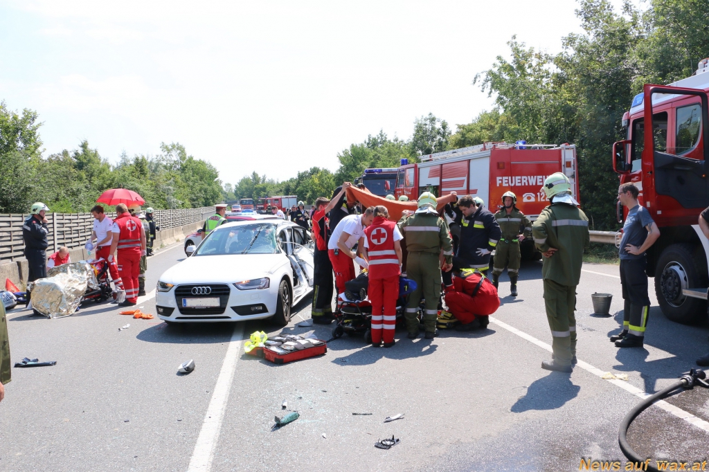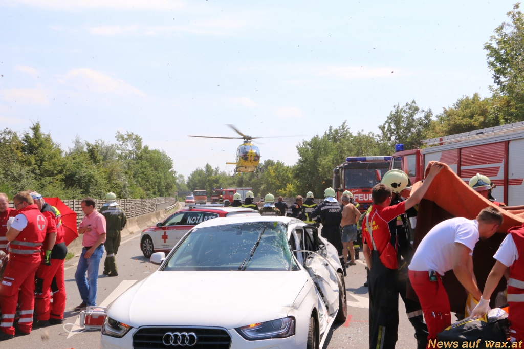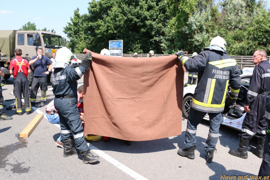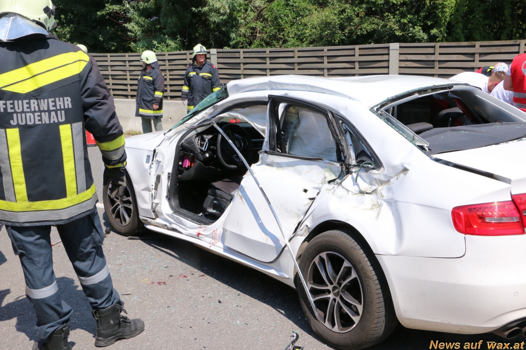 Die beiden Frauen wurden schwerst verletzt und die Lenkerin wurde von der Feuerwehr mit einem hydraulischen Rettungsgerät aus dem Unfallwrack geschnitten. Die vier Soldaten blieben unverletzt und kamen mit dem Schrecken davon. Mutter und Tochter wurden von zwei Notarzthubschraubern des ÖAMTC nach St. Pölten und bzw. ins SMZ Ost geflogen. Die Feuerwehr Judenau barg den Unfall Audi und stellte in sicher ab. Der LKW wurde vom Bundesheer verbracht.
