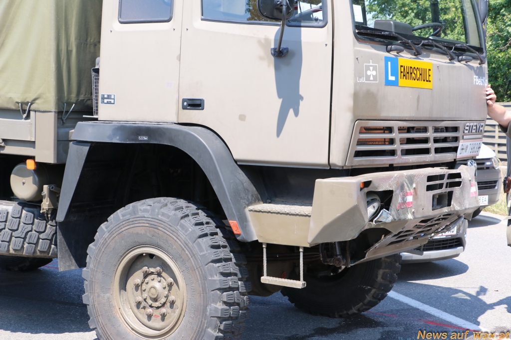 Auf der B19 bei Judenau kam es heute kurz vor 1400 Uhr zu einem schweren Verkehrsunfall. Ein Fahrschul LKW des Bundesheeres war von Tulln kommend auf der B 19 Richtung Neulengbach unterwegs. Zur gleichen Zeit fuhr bei der Auffahrt Judenau eine Frau mit einem Audi A4 auf die Bundesstraße auf. Dabei kam es zu einem Zusammenstoß. Im PKW waren eine Mutter und ihre Tochter. Der Fahrschul LKW aus der Kaserne Langenlebarn war mit einem Fahrlehrer und drei Rekruten unterwegs.