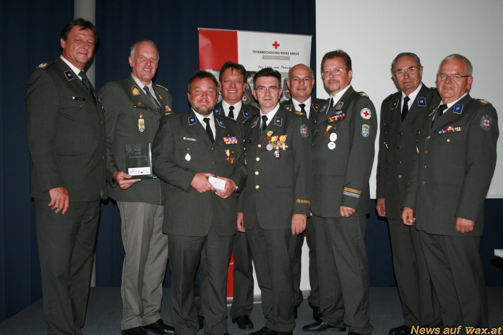 Mitte Mai fand die große Bundes- und Landesrettungsübung Arcanus in Niederösterreich statt, die von Rotkreuz-Mitarbeiterinnen und Mitarbeitern in monatelanger Planung vorbereitet und durchgeführt wurde. Im Rahmen der Generalversammlung wurden nun vier Aus-zeichnungen für den engagierten Einsatz vergeben. So erhielten Johann Kaufmann jun., stellvertretender Landesrettungskommandant, Hans Ebner, Viertelsvertreter und Bezirksstel-lenleiter von Langenlois, Manfred Ehrgott, Bezirksstellengeschäftsführer von Zwettl und Chef des Bezirksstabes, sowie Franz Hauer, Bereichskommandant, die goldene KAT-Medaille durch das Präsidium sowie Landesrettungskommandant Werner Kraut verliehen.