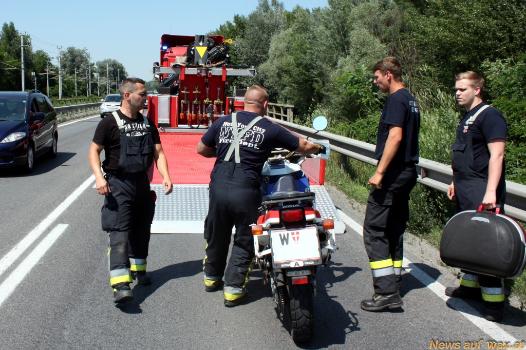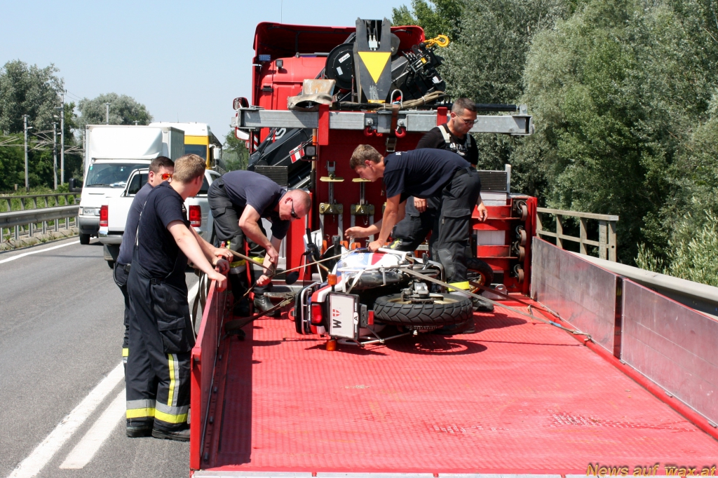 Am Freitag, 03.07.2015 wurde um 14:10 Uhr die Stadtfeuerwehr Tulln zur Bergung eines Motorrades nach einem Verkehrsunfall auf der LB19 alarmiert.