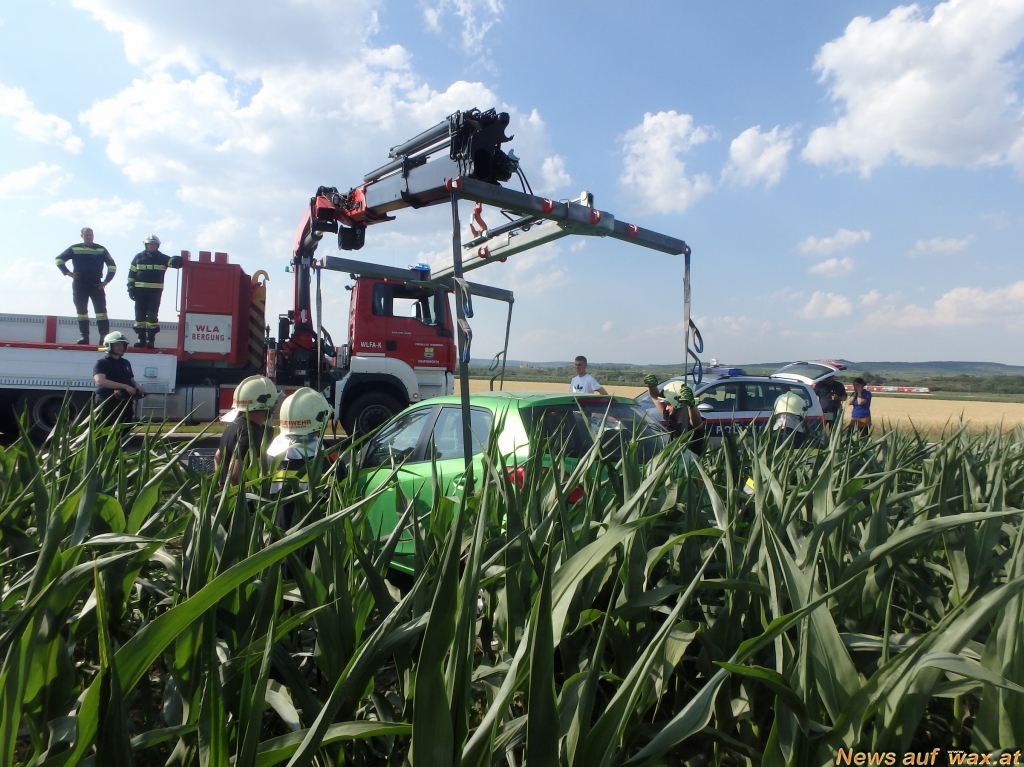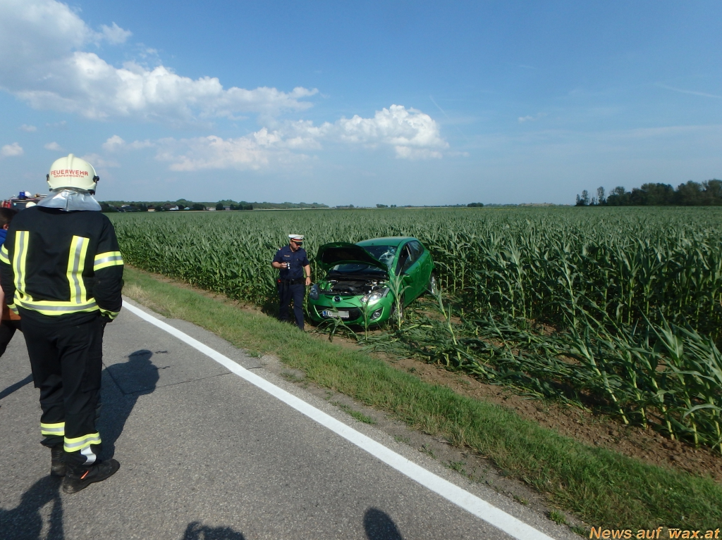 In der Nachmittagshitze des 06.07.2015 verlor eine PKW-Lenkerin auf der L2192 zwischen Wagram/Wagram und Grafenegg die Herrschaft über ihr Fahrzeug, kam von der Straße ab und im nahen Feld beschädigt zum Stehen. Zur Fahrzeugbergung wurden die Feuerwehren Wagram/Wagram und Grafenwörth alarmiert.