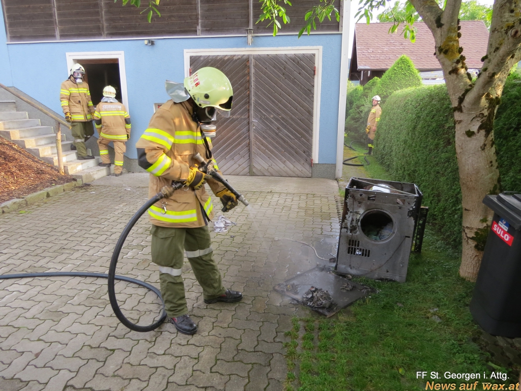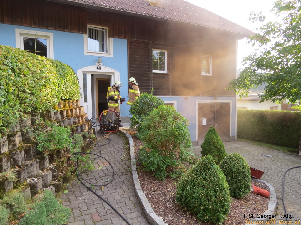 Bei unserem Eintreffen drang schon dichter schwarzer Rauch aus der Haustüre. Der Brand konnte in der Waschküche im Keller lokalisiert werden. Unverzüglich drang ein Atemschutztrupp mit UHPS ins Gebäude vor. Der Brandherd konnte rasch unter Kontrolle gebracht werden.