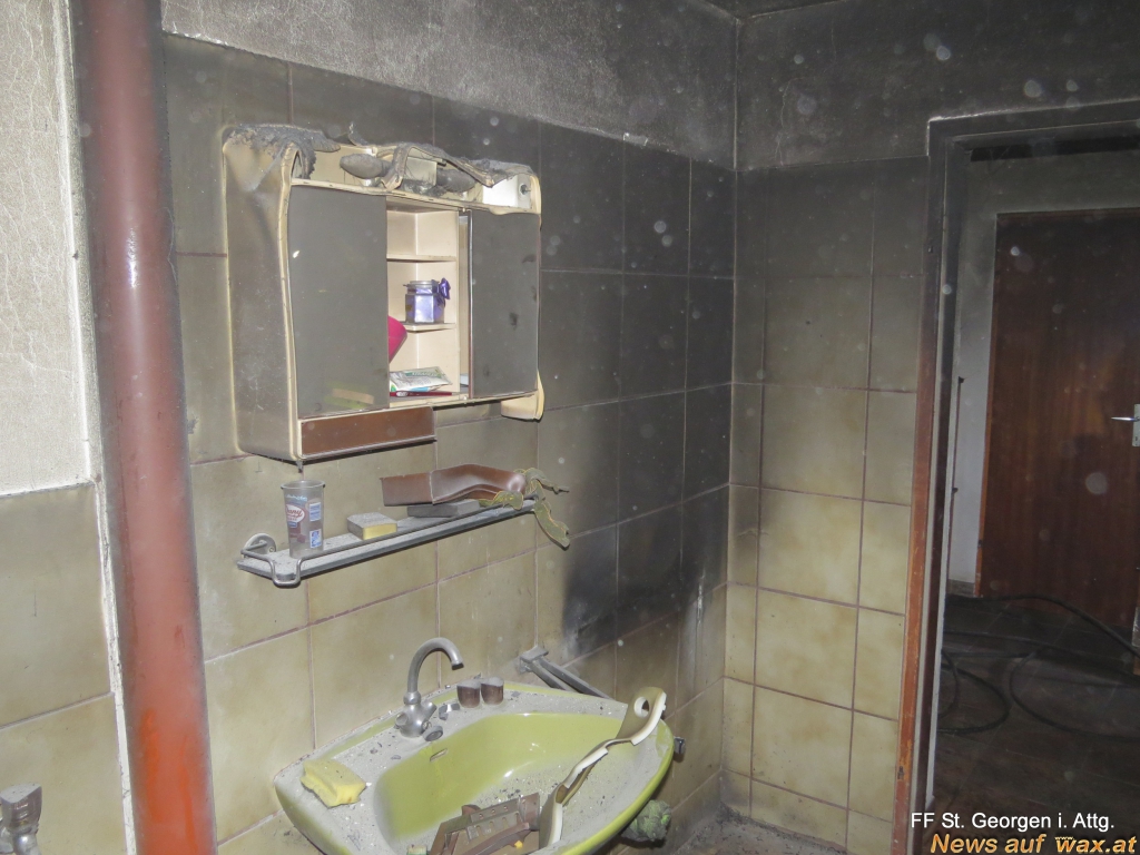 Anschließend wurden Mittels Wärmebildkamera die Glutnester abgelöscht, der Wäschetrockner ins Freie gebracht, das gesamte Gebäude belüftet und die Temperatur der Brandstelle mehrmals kontrolliert.