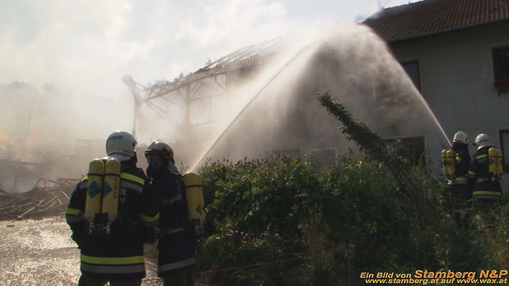 Elf Freiwillige Feuerwehren mit insgesamt 133 Mann und 26 Fahrzeugen brachte den Brand unter Kontrolle, konnten jedoch einen Totalabbrand des Wirtschaftstraktes nicht mehr verhindern. Bei dem Brand verendeten 100 Tiere.
