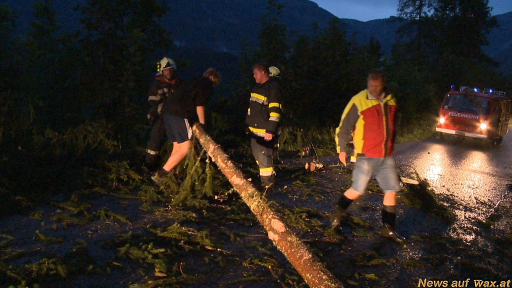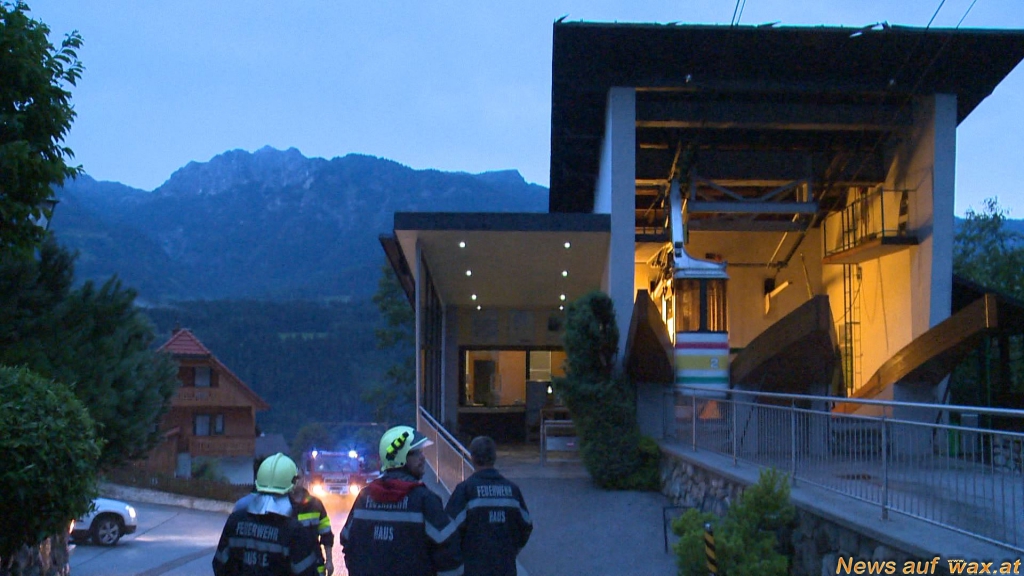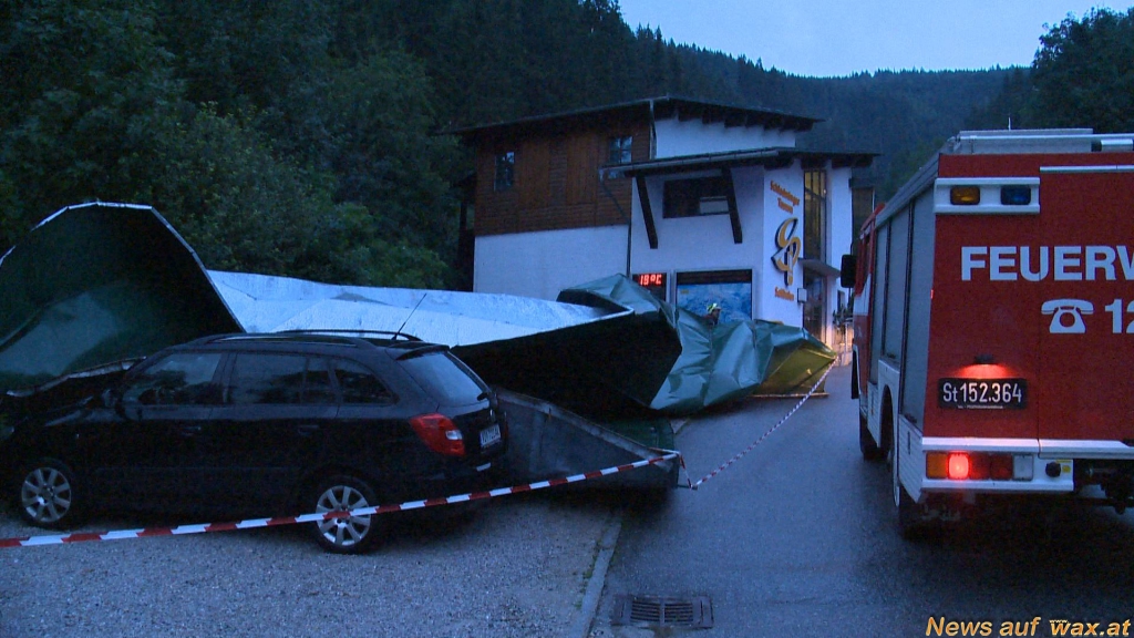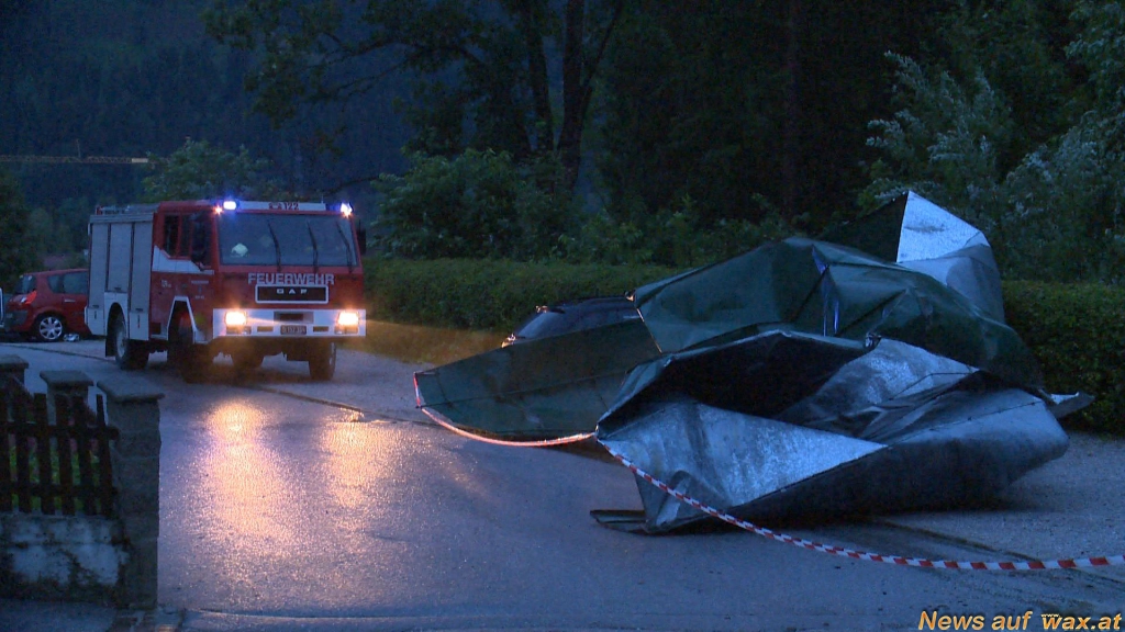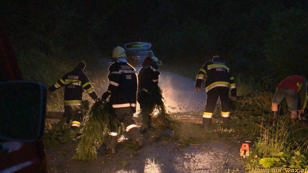 In Haus im Ennstal wurde durch den starken Wind die komplette Dachhaut der westlichen Gondelseilbahn-Talstation abgedeckt. Das Blechdach landete auf dem daneben befindlichen Parkplatz und beschädigte einen dort geparkten PKW schwer. Mehrere Straßen wurden von umgeworfenen Bäumen blockiert, die Einsatzkräfte rückten mit Motorsägen an, um die Verkehrswege wieder frei zu machen; zu dem galt es für die FF Haus auch noch überflutete Keller freipumpen. Ein Retensionsbecken wurde von einer Mure ausgefüllt, quillte über - Verkehrswege wurden überflutet.