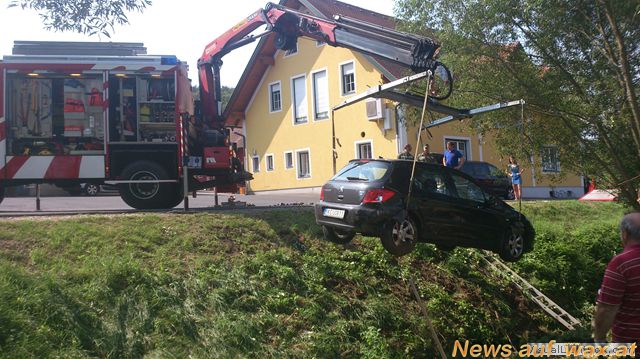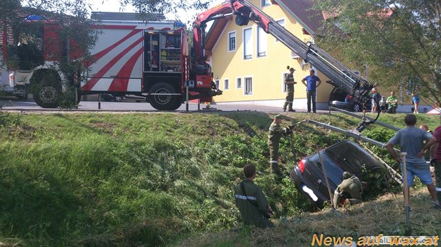 Da das Fahrzeug eine extreme Schräglage hatte, musste die Feuerwehr Jennersdorf