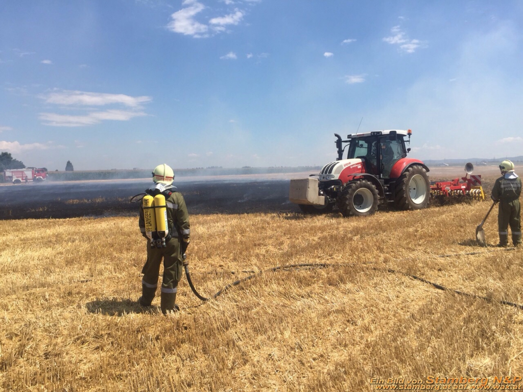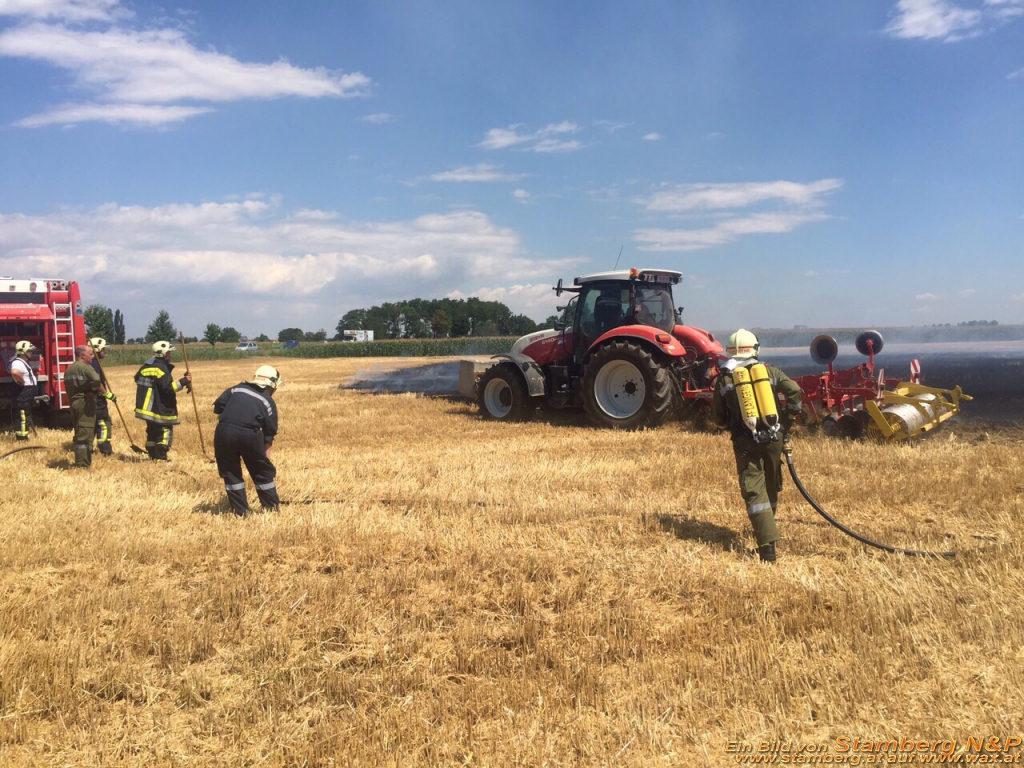 Zur Unterstützung war auch ein Landwirt gekommen. Dieser fuhr über die abgelöschte Ackerfläche mit dem Grupper und arbeitete somit das Brandgut gleich ein. So das alle Glutnester unter die Erde kamen und ein Wiederaufflammen weitgehend verhindert.