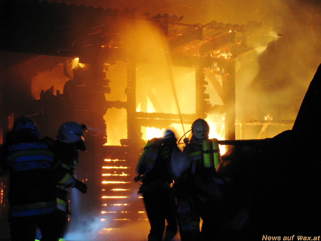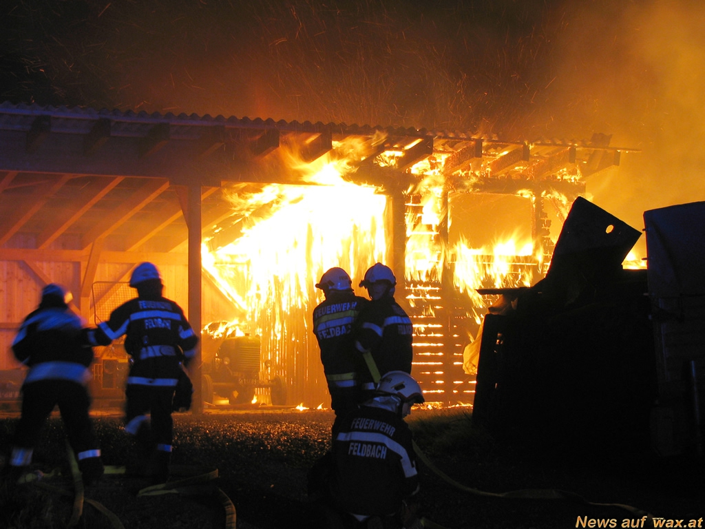 Feldbach) die Sirenen für einen Wirtschaftsgebäudebrand auf, während der