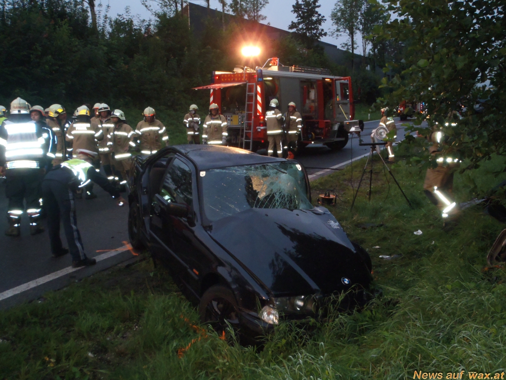 Auf Höhe der Brücke Grazerstraße kollidierten aus bisher unbekannter Ursache 2 Personenkraftfahrzeuge frontal. Die beiden Unfallwracks kamen dabei ca. 100 m entfernt voneinander zum Stillstand, wobei 1 Fahrzeug am Dach zum Liegen kam. Die 3 Unfallteilnehmer wurden dabei unbestimmten Grades verletzt.