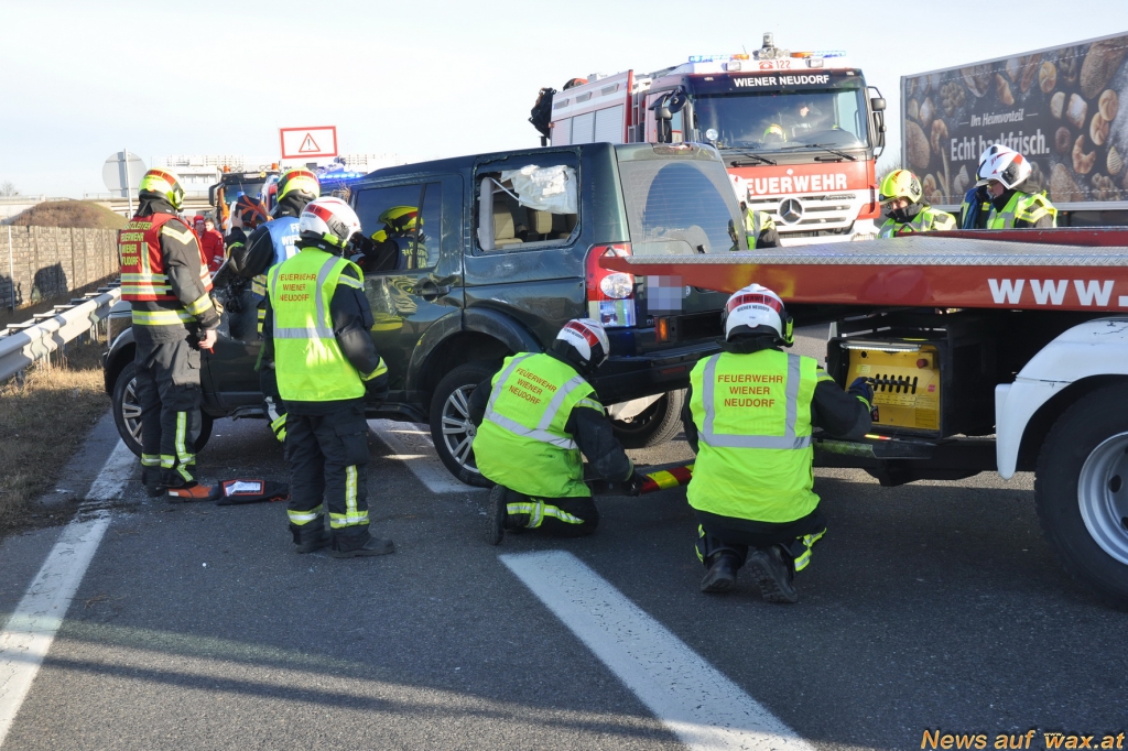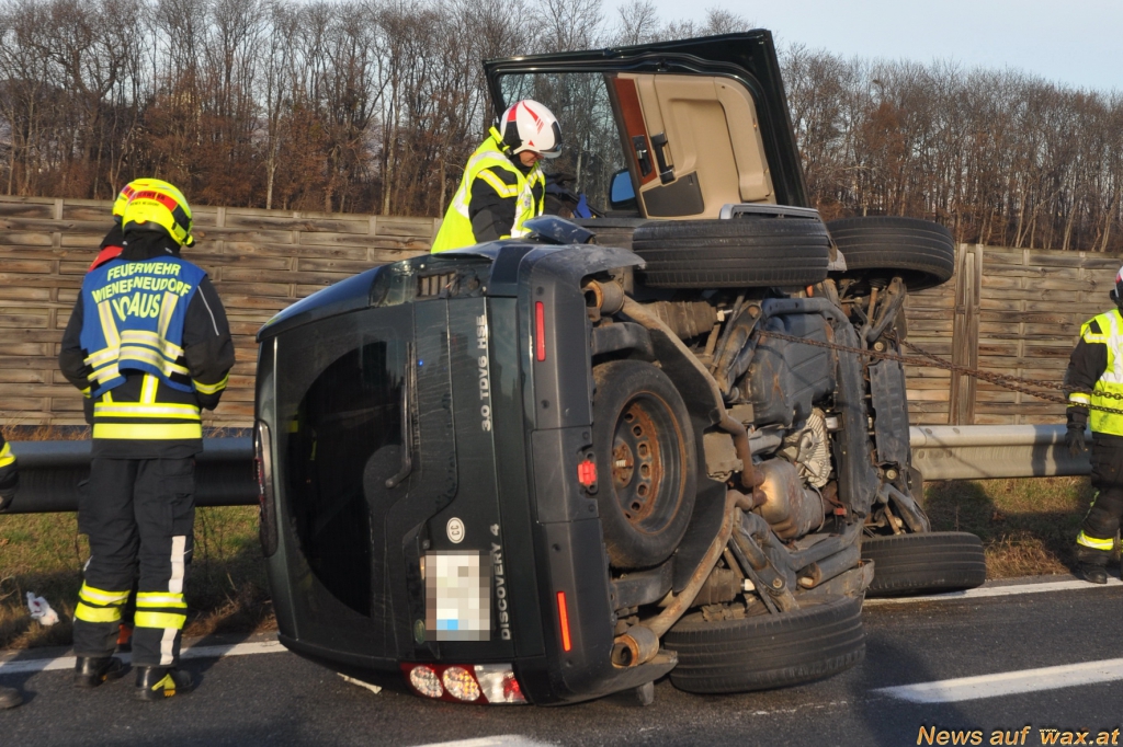 Für die Dauer der Bergung mussten zwei Spuren am Autobahnknoten gesperrt werden. Die Freiwillige Feuerwehr Wiener Neudorf stand mit vier Fahrzeugen und 14 Mann im Einsatz.